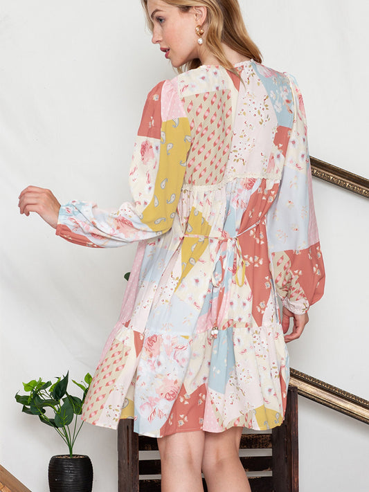Sold outPrinted Tie Neck Long Sleeve Dress